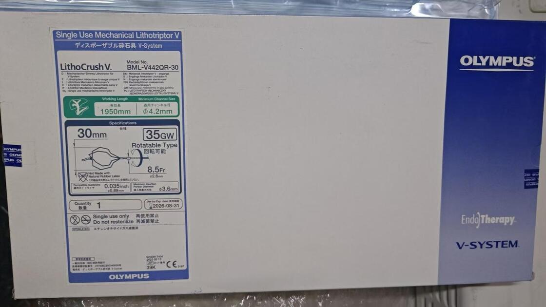Olympus BML‑V442QR‑30 V‑System เครื่องบดนิ่วเชิงกลแบบใช้ครั้งเดียวเป็นอุปกรณ์ทางการแพทย์ที่ใช้ในขั้นตอนการส่องกล้องเพื่อบดนิ่ว (ก้อนนิ่ว) โดยเฉพาะในท่อน้ำดี ในระหว่างการผ่าตัดแบบบุกรุกน้อยที่สุด ออกแบบมาเพื่อใช้ครั้งเดียวแล้วทิ้ง ไม่นำกลับมาใช้ใหม่